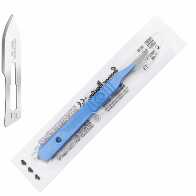 Jednorazowe, jałowe skalpele pakowane w indywidualne opakowania.