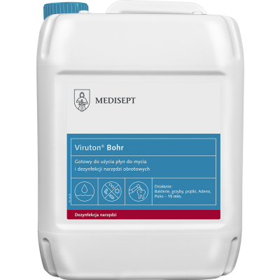 Preparat przeznaczony do jednoczesnego mycia i dezynfekcji precyzyjnych narzędzi obrotowych oraz pozostałych inwazyjnych instrumentów medycznych. Viruton® Bohr zalecany jest do dezynfekcji: wierteł, frezów kostnych ze stali, twardych metali, diamentów, narzędzi ściernych i polerujących takich jak: gumki silikonowe, płytki ceramiczne oraz narzędzi do leczenia kanałowego. Zawiera inhibitor