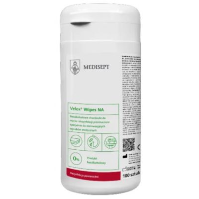 Velox Wipes NA są zalecane do dezynfekcji różnorodnych powierzchni sprzętu medycznego z tworzyw sztucznych, stali szlachetnej, metalu, aluminium, gumy, porcelany, szkła akrylowego. Mogą być stosowane na oddziale intensywnej opieki medycznej oraz bloku operacyjnym, do dezynfekcji aparatury medycznej, sprzętu rehabilitacyjnego, foteli zabiegowych, inkubatorów i lamp. Nie zawierają aldehydów i fosforanów, dzięki czemu nie odbarwiają dezynfekowanych powierzchni. Posiadają przyjemny zapach.